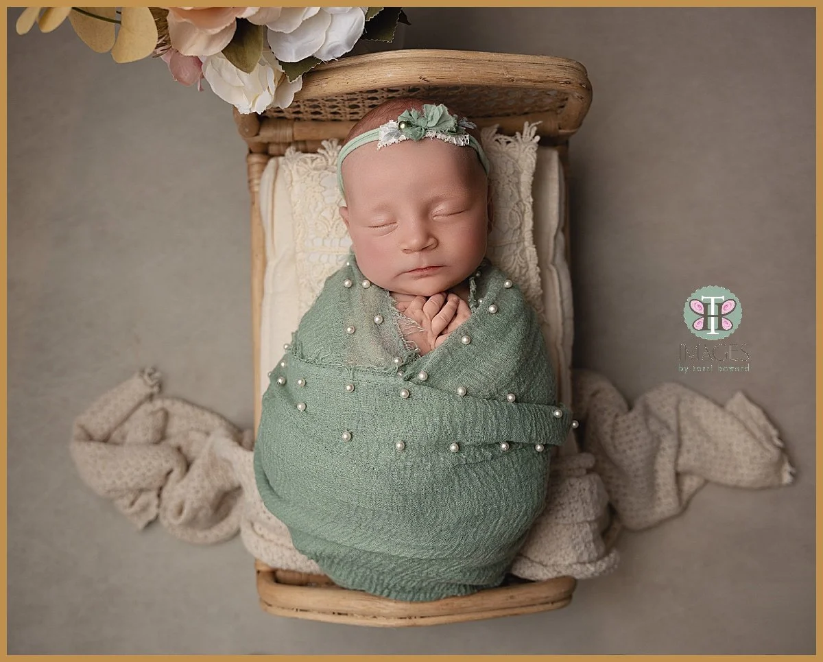 We focused on a color palette of greens, pinks and beige, and delicate textures to keep the attention on her tiny features. This style of newborn photography in Bothell ensures your images remain timeless for years to come.