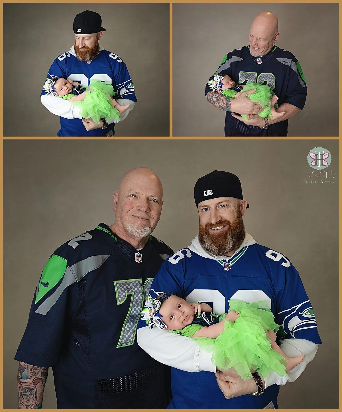 Dad and grandpa are big Seattle Seahawk fans so we made sure we got a few photos of her in her adorable Seahawk onsie and tutu and also made sure to capture a few of her with Dad and Grandpa all decked out in their jerseys.