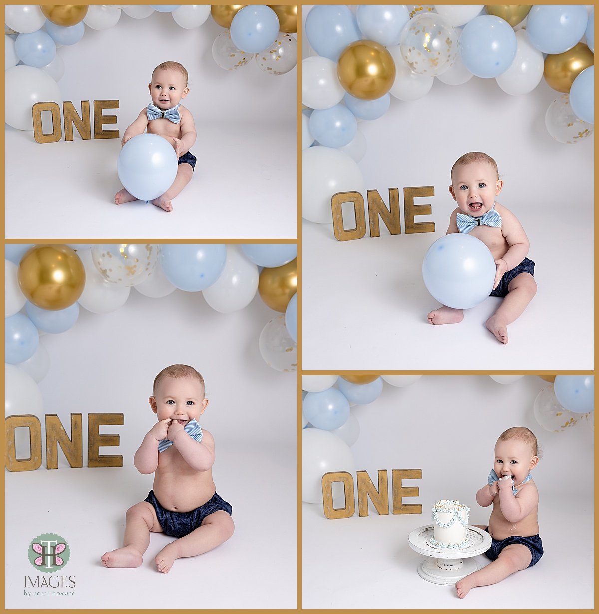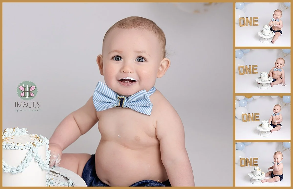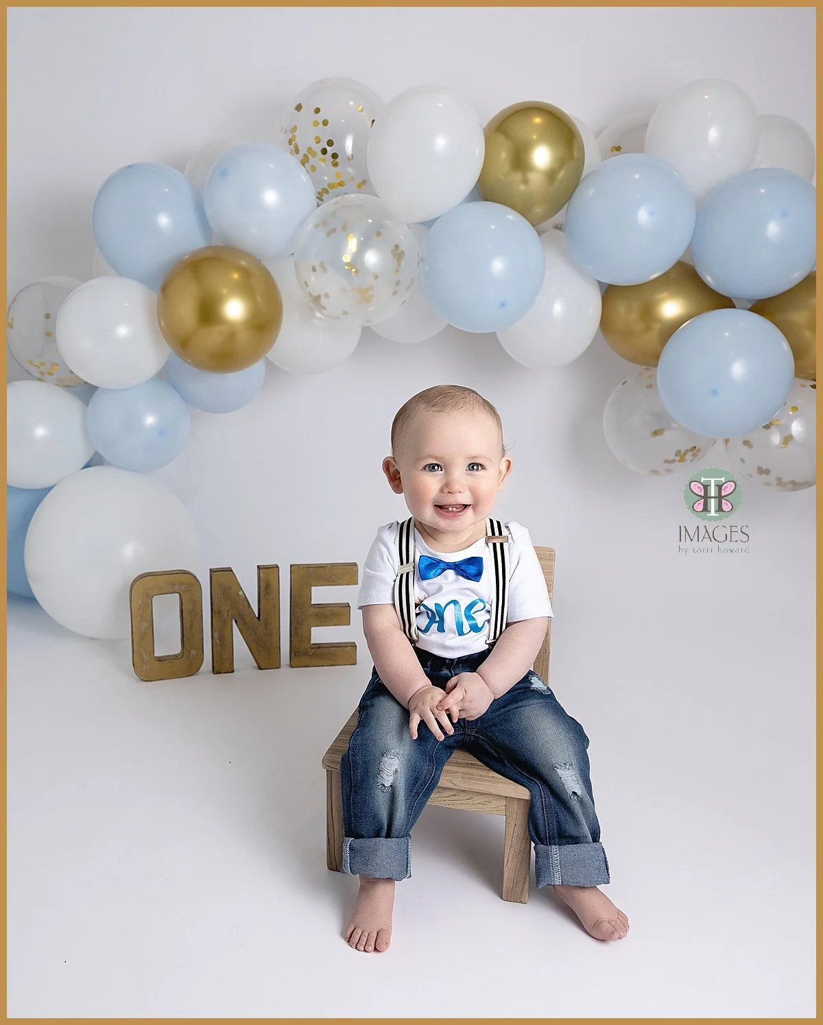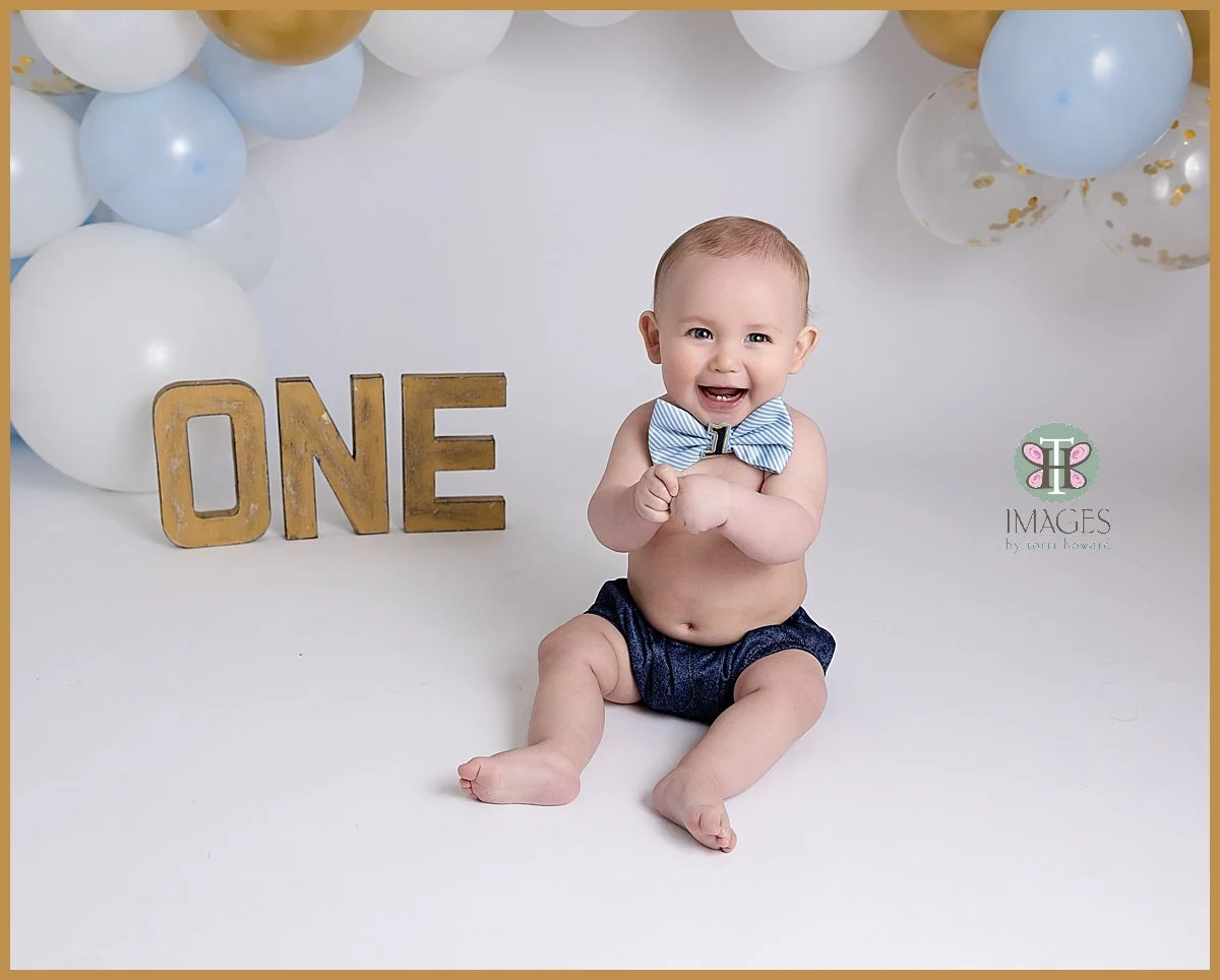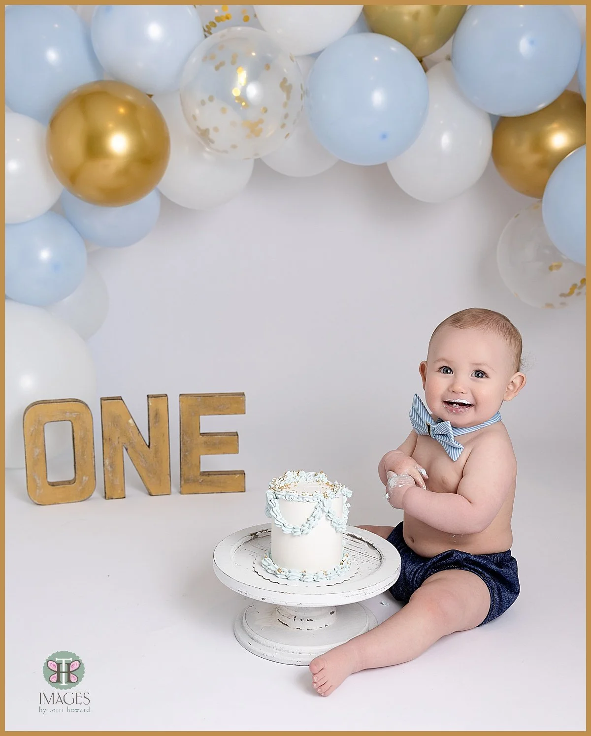 Mason’s cake smash session was full of charm, giggles, and the perfect blend of white, gold, and blue to celebrate his big milestone.