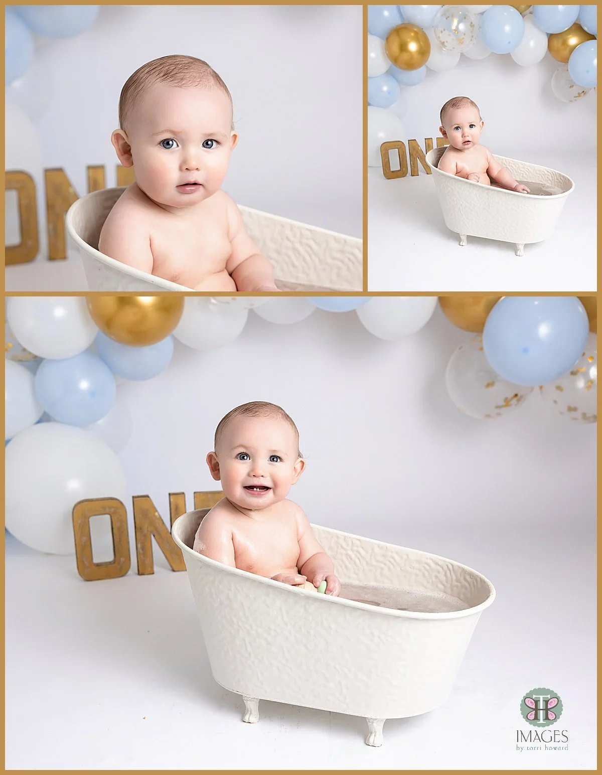 After the smashing was done and the frosting had been thoroughly enjoyed, Mason wrapped up the session with a splashy bath in the mini tub. Bathtime is always a highlight, and Mason loved every minute of it—splashing, laughing, and soaking up the fun. It’s the perfect way to wind down after the excitement of the cake and makes for some of the cutest, most candid photos. This session was such a joy to capture and a beautiful way to mark Mason’s first year!