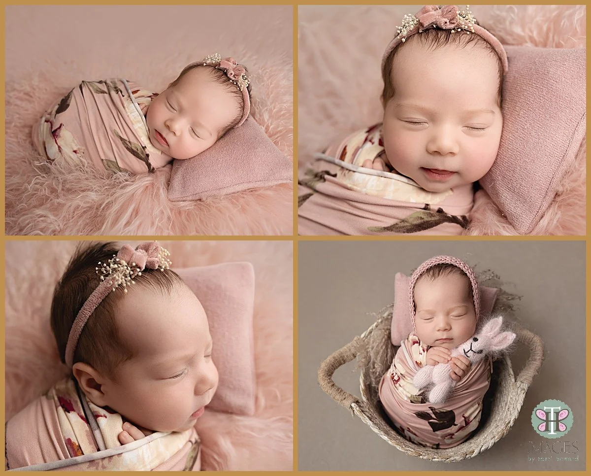 She spent part of her session quietly awake, taking everything in with those bright, observant eyes. These moments added such a unique layer to her gallery—capturing not just how she looked, but a glimpse of her early personality. As the session continued, she drifted into a deep, peaceful sleep, allowing for those classic curled-up poses that parents love.