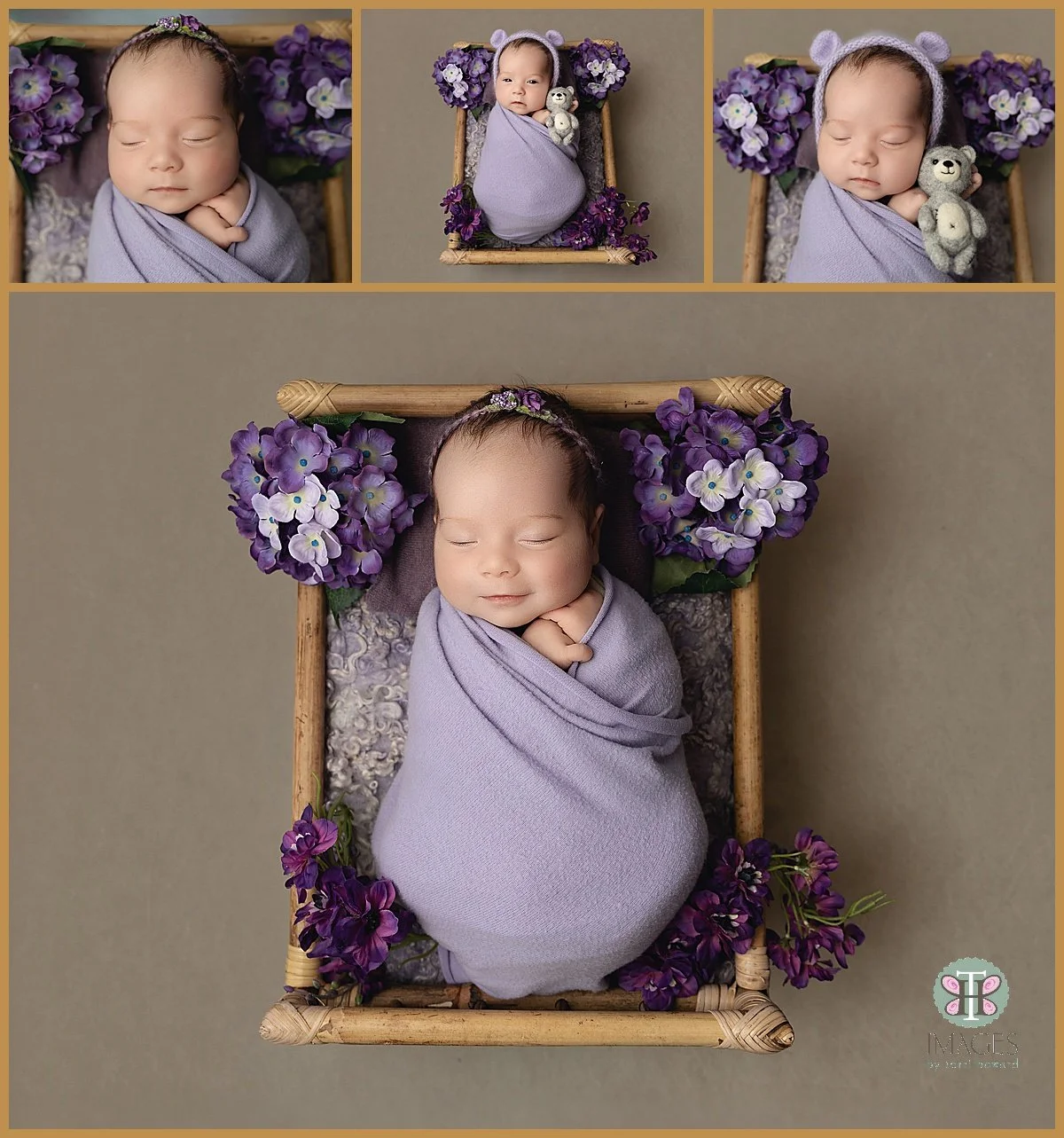 There’s something so special about watching a newborn begin to take in the world around her, and this baby girl’s session was the perfect blend of curiosity and calm. Styled in soft purples and delicate pinks, her session felt both feminine and timeless while still keeping the focus on her natural expressions.
